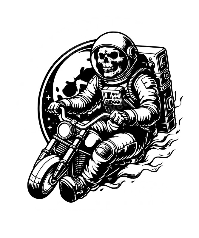 Skull Astronaut Biker DTF Transfer | Stunt Drivers Department Ready to Press