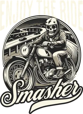 Skull Biker Enjoy The Ride Smasher Motorcycle DTF Transfer