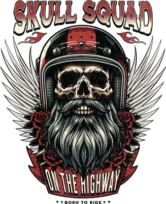 Skull Squad Biker Helmet Bearded Skull DTF Transfer Wings Roses