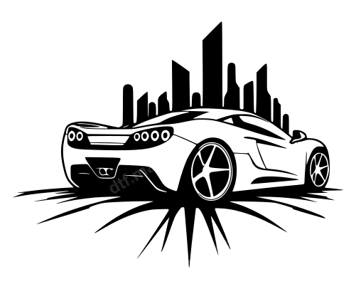 Sleek Sports Car City Skyline DTF Transfer | Ready to Press Automotive Design