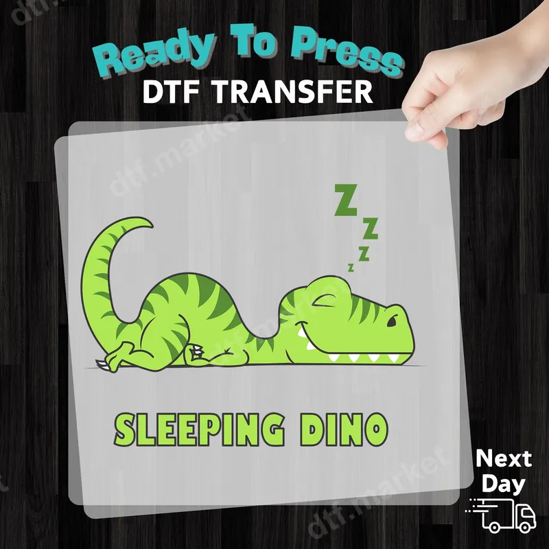 See allDrift into dreamland with our charming Sleeping Dino DTF Transfer, featuring an adorable green cartoon dinosaur happily snoozing with 'Z's floating above its head. This playful and cute design captures the peaceful slumber of a prehistoric pal, perfect for adding a touch of whimsy to any garment. As a high-quality DTF transfer, it arrives completely ready to press, making your customization projects a breeze. This delightful sleeping dinosaur design is ideal for parents, grandparents, and anyone looking to create unique apparel for children. It's a fantastic choice for birthday gifts, baby shower presents, or simply to add a fun, sleepy vibe to everyday outfits. Imagine this cute iron on transfer on PJs, school bags, or even nursery decor, bringing a smile to faces young and old. It’s also great for crafters looking for easy-to-use heat press designs for their shop. Applying this vibrant ready to press transfer is incredibly simple. Our premium direct to film transfer works beautifully on a wide variety of fabrics, including cotton, polyester, and their blends. For best results, use a heat press at 300-325°F for 15 seconds with medium pressure. It can also be applied with a household iron (follow instructions for firm, even pressure). Enjoy a seamless application process with no weeding required, unlike traditional vinyl transfers. Experience professional-grade quality with every Sleeping Dino shirt design. Our DTF transfers are known for their vibrant colors, exceptional durability, and soft-to-the-touch finish that feels like part of the fabric. Engineered with strong adhesive and crack-resistant properties, this apparel transfer will withstand countless washes without fading or peeling, ensuring your custom creations look fantastic for a long time.