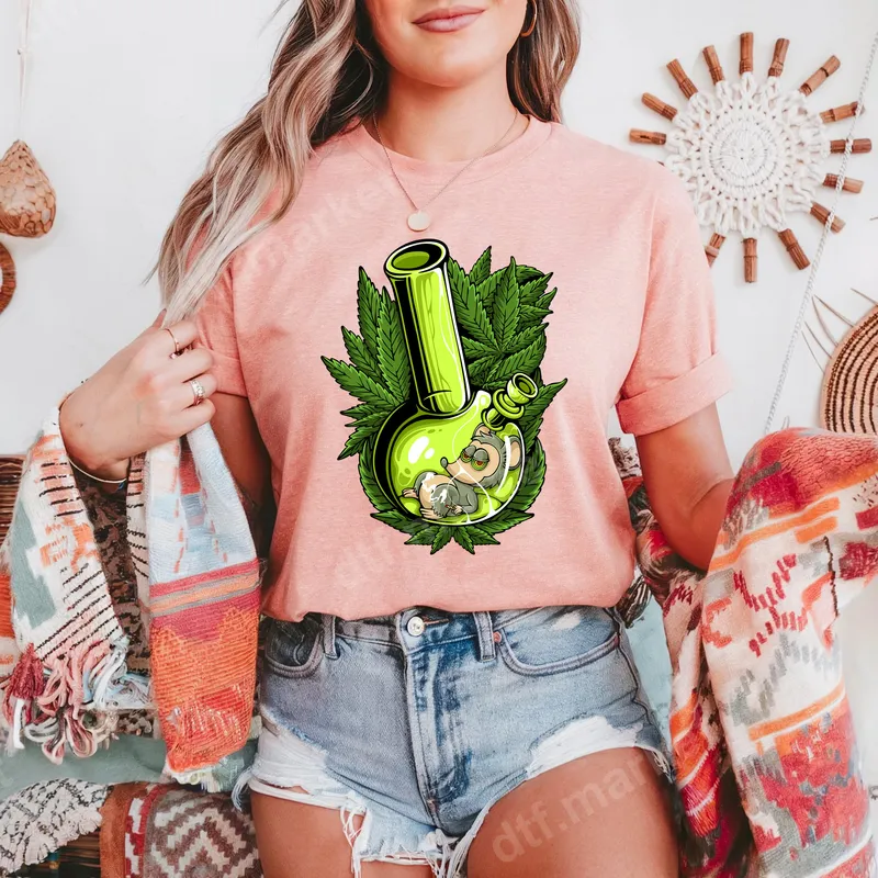 See allChill out with this unique DTF transfer featuring a sleepy cartoon mouse lounging comfortably inside a bright green bong, encircled by vibrant cannabis leaves. This fun and quirky design captures a relaxed, carefree vibe, making it a perfect statement piece for those who appreciate adult humor and 420 culture. This ready to press transfer brings a touch of playful irreverence to any garment, offering an easy way to customize your wardrobe. This design is ideal for cannabis enthusiasts, college students, or anyone with a laid-back attitude and a good sense of humor. It makes a fantastic gift for friends on birthdays, 4/20 celebrations, or just as a fun surprise. Perfect for casual wear, music festivals, or simply relaxing at home, this heat press design is sure to spark smiles and conversations. Applying this heat press transfer is incredibly simple. It adheres flawlessly to a wide range of fabrics, including cotton, polyester, and various blends. Achieve professional results with a heat press set at 300-325°F for 15 seconds with medium pressure, or use a household iron for a great finish. The best part? No tedious weeding required – just press and peel! Our professional DTF film ensures a premium quality t-shirt transfer with vibrant, long-lasting colors that won't crack or fade. The design is soft to the touch, providing superior comfort compared to traditional vinyl transfers. Enjoy a durable iron on transfer that maintains its integrity wash after wash, allowing you to showcase your unique style for years to come.