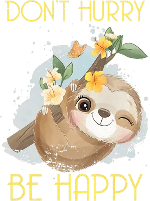 Sloth "Don't Hurry Be Happy" DTF Transfer | Cute Floral Animal Design