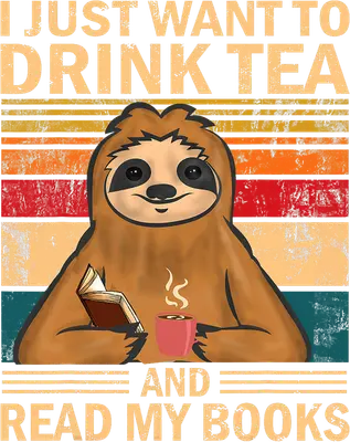 Sloth Drink Tea Read Books Retro DTF Transfer