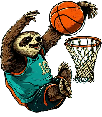 Sloth Dunking Basketball DTF Transfer | Ready to Press Heat Transfer Design