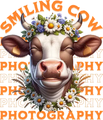 Smiling Cow Photography DTF Transfer - Farm Animal Flower Crown Ready to Press
