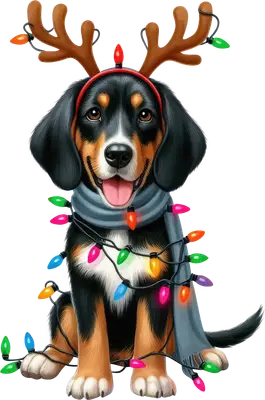 Smiling Dog in Reindeer Antlers & Christmas Lights DTF Transfer