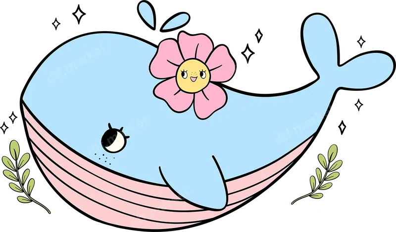 Smiling Kawaii Whale DTF Transfer with Pink Flower