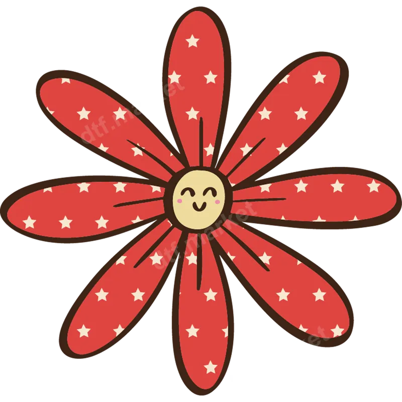 See allAdd a touch of cheerful whimsy to your apparel with this adorable smiling star flower DTF transfer. Featuring vibrant red petals adorned with playful white stars and a joyful, smiling face at its center, this design exudes pure happiness. It's a perfect ready to press transfer to brighten up any fabric, bringing a cute and friendly vibe to your everyday wear or special projects. This unique design is a delightful direct to film transfer for crafters and small businesses. This charming heat press design is ideal for anyone who loves cute, kawaii, or botanical aesthetics. Perfect for kids' clothing, gifts for friends, adding flair to your own wardrobe, or creating custom merchandise. Whether for a birthday party, a casual day out, spring and summer events, or just because you want to spread some joy, this iron on transfer is a fantastic choice. It makes a thoughtful present for crafters, teachers, or anyone who appreciates a touch of sunshine. Applying this vibrant apparel transfer is simple and hassle-free, designed for both beginners and experienced users. Our heat press transfers work beautifully on a wide range of materials, including cotton, polyester, and various blends. For best results, use a heat press at 300-325°F for 15 seconds with medium pressure. It can also be applied with a household iron with care. The best part? There's absolutely no weeding required, making your customization process quick and enjoyable. Experience professional-grade quality with every print. This premium DTF transfer boasts incredibly vibrant colors that pop, ensuring your design looks stunning and lasts wash after wash. The durable film provides a soft-to-touch feel, flexibility, and exceptional crack resistance, outperforming traditional vinyl transfers. Our ready to press transfers are crafted using strong adhesive for a secure bond, guaranteeing your custom creations maintain their charm and quality for a long time.