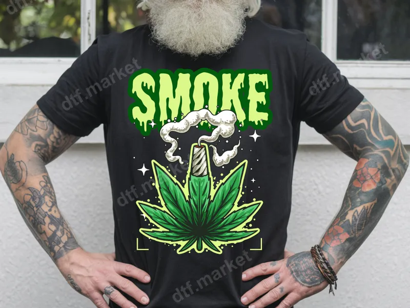 See allThis vibrant DTF transfer features a bold cannabis leaf with a lit joint, complete with realistic smoke plumes and sparkling accents. Above, the word "SMOKE" drips in an eye-catching green font, giving the design an edgy, graphic feel. This ready to press design is perfect for making a statement and adding a touch of counter-culture style to any garment or accessory. Ideal for cannabis enthusiasts, festival-goers, or anyone looking to express a relaxed and bold personality. This versatile heat transfer makes an excellent gift for friends, for casual wear, or for creating custom merchandise. Whether you're attending a concert, a social gathering, or just chilling out, this design is sure to spark conversation. Applying this direct to film transfer is straightforward and requires no weeding, unlike traditional vinyl transfer sheets. It adheres beautifully to cotton, polyester, and most fabric blends. For best results, use a heat press at 300-325°F for 15 seconds with medium pressure, then peel cold. A household iron can also be used with careful application for a unique iron on decal. Crafted with high-quality, professional DTF film, this heat press design ensures vibrant colors and sharp details that truly stand out. Our apparel transfer is durable, crack-resistant, and provides a soft, flexible feel on your finished garment. Enjoy long-lasting wear and a professional finish that elevates your custom clothing with this t-shirt transfer.