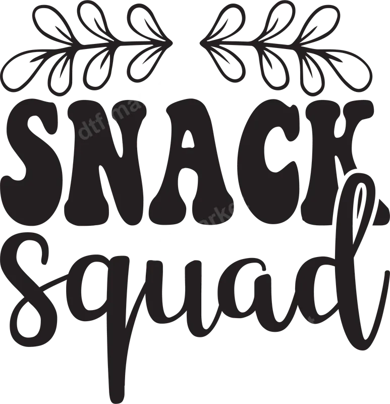 See allThis eye-catching "Snack Squad" DTF transfer features a playful design perfect for anyone who loves their treats. The word "SNACK" is presented in a bold, retro-groovy font, while "Squad" follows in an elegant, flowing script, all framed by subtle leafy accents. This ready to press design brings a fun, lighthearted vibe, making it an ideal heat transfer for personalizing your favorite apparel. Calling all snack enthusiasts, foodies, and best friends! This versatile iron on transfer is perfect for creating matching shirts for your foodie group, family vacations, or casual hangouts. It makes a fantastic gift for birthdays, holidays, or just to celebrate your shared love for snacks. Embrace the fun and show off your snack-loving spirit with this unique apparel transfer. Applying your "Snack Squad" DTF transfer is a breeze! Designed for durability and ease, it works beautifully on various fabric types including cotton, polyester, and their blends. For best results, apply with a heat press at 300-325°F for 15 seconds with medium pressure, then cold peel. You can also use a household iron for smaller applications. Enjoy a hassle-free process with no weeding required, just press and wear! This heat press ready decal makes custom apparel simple. Our DTF transfers are crafted using premium quality direct to film technology, ensuring vibrant colors and exceptional detail. Each heat press design is made with professional-grade DTF film that boasts strong adhesive for long-lasting wear. The result is a crack-resistant, soft-to-the-touch finish that feels great on any garment. Experience superior durability and a professional look with every application, making your custom transfer stand out.