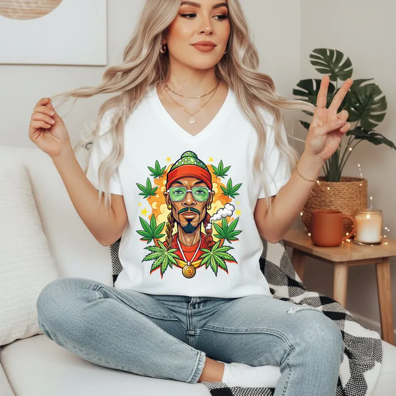 See allThis vibrant DTF transfer features a cool, stylized illustration of Snoop Dogg, the legendary hip-hop artist, complete with his iconic braids, beanie, and shades. Surrounded by bold green cannabis leaves and subtle starbursts, this design captures his laid-back, smoke-filled vibe. It's a ready to press design that brings immediate personality to any garment. Ideal for hip-hop enthusiasts, cannabis aficionados, or anyone who appreciates unique streetwear and pop culture icons. This iron on transfer makes an excellent gift for birthdays, music festivals, or just to surprise a friend who loves Snoop Dogg and his distinctive style. Perfect for casual wear, concerts, or simply expressing a relaxed attitude. Applying this premium heat transfer is incredibly easy. It works seamlessly on a wide range of materials, including cotton, polyester, and various fabric blends. For best results, use a heat press at 300-325°F for 15 seconds with medium pressure, then peel cold. A household iron can also be used. No tedious weeding or intricate layering required with this heat press ready design. Crafted with professional-grade DTF film, this transfer ensures vibrant colors that pop and remain crisp wash after wash. The design is highly durable, crack-resistant, and offers a soft, flexible feel on your chosen apparel, unlike traditional vinyl transfer options. Enjoy long-lasting quality and a professional finish every time you create your custom shirts.