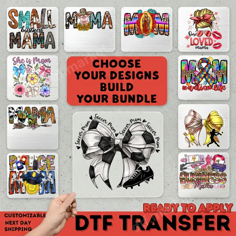See allThis vibrant direct to film transfer showcases a beautifully detailed bow adorned with a classic black and white soccer ball pattern, complete with "Soccer Mom" text repeating and a small soccer cleat. It's a stylish way to express your support for the team. This ready to press DTF transfer captures the spirit of game day with a chic, sporty aesthetic, perfect for custom apparel. Designed for the proud soccer mom, coach, or fan, this design is ideal for cheering on your favorite player from the sidelines. It's perfect for game days, tournaments, team events, or as a thoughtful gift for Mother's Day, birthdays, or end-of-season celebrations. Create matching outfits for your squad or a unique personalized item that stands out in the stands. Our versatile heat press transfer applies seamlessly to a wide range of fabrics, including 100% cotton, polyester, and various cotton/poly blends. For best results, use a heat press at 300-325°F for 15 seconds with medium pressure, followed by a cool peel. Detailed instructions are included. Unlike traditional vinyl transfers, this iron on decal requires no weeding or layering, making application quick and effortless. Experience professional quality with our premium DTF transfers. Each shirt design boasts incredibly vibrant colors, exceptional durability, and a soft-hand feel that won't crack, peel, or fade after multiple washes. Crafted using robust direct to film transfer technology, these apparel transfers feature a strong adhesive that ensures a long-lasting bond to your chosen garment, delivering a high-quality finished product every time.