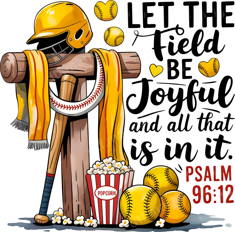 Softball Faith DTF Transfer: Psalm 96:12 'Field Be Joyful' Design