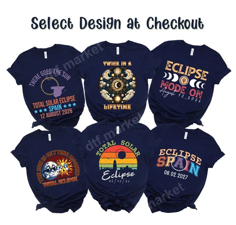 Solar Eclipse 2026 2027 DTF Transfers | Celestial & Spain Designs