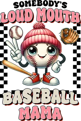 See allCheer on your favorite player with this adorable 'Somebody's Loud Mouth Baseball Mama' DTF transfer. This vibrant design features a charming baseball character sporting a pink beanie and red sneakers, giving a peace sign while holding a bat. A classic baseball and glove accompany the witty text, all set against a playful checkerboard background. It's a fun and energetic design, perfect for any baseball mom ready to make some noise. This high-quality transfer comes ready to press, making it easy to personalize your gear. This design is perfect for dedicated baseball moms, proud grandmas, or anyone who loves the game and isn't afraid to show their spirit from the stands. Ideal for Little League games, high school tournaments, or just everyday wear, this iron on transfer makes a fantastic gift for Mother's Day, birthdays, or as an end-of-season coach's wife present. Small t-shirt businesses and crafters looking to create unique baseball apparel will find this heat transfer design a popular choice for their inventory, appealing to the passionate sports parent market. Applying this heat press transfer is a breeze. It works beautifully on a variety of materials including cotton, polyester, and their blends, even nylon. For best results, use a heat press at 300-325°F for 15 seconds with medium pressure, or follow instructions for a household iron. There's no tedious weeding required – just peel and press! Create custom t-shirts, cozy hoodies, stylish tote bags, unique aprons, or even personalized denim jackets. To ensure lasting durability, wash garments inside out and tumble dry on low heat. Experience superior quality with this ready to press transfer. It boasts vibrant, full-color printing that captures every fine detail, ensuring your design truly stands out. Our advanced DTF printing process results in a finish that is crack-resistant and incredibly soft to the touch, avoiding that heavy, stiff vinyl feel. Each direct to film transfer is meticulously printed on premium DTF film, featuring a strong adhesive backing for professional-grade results on every item you customize.
