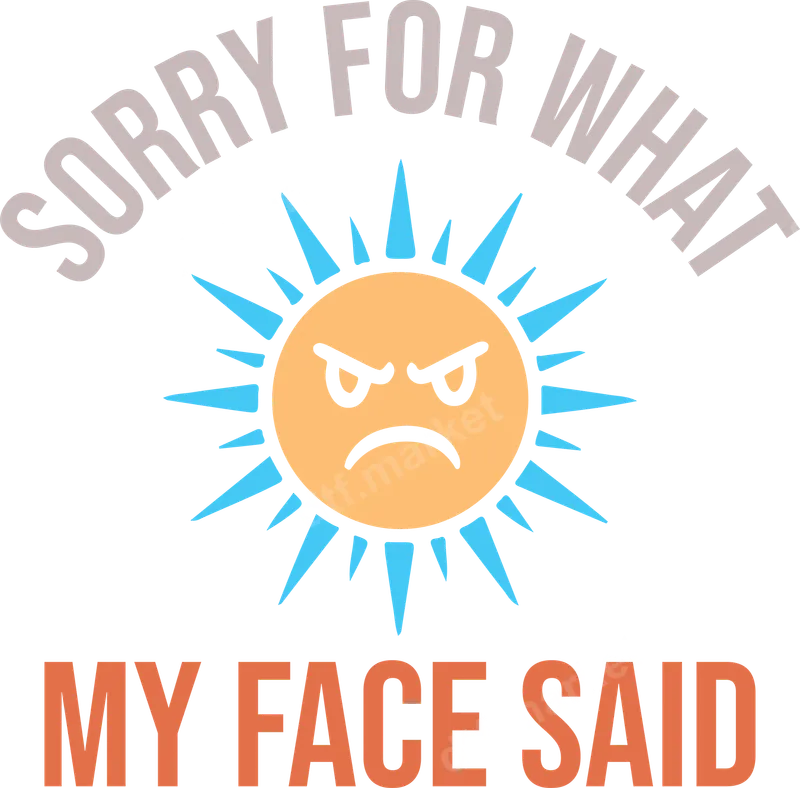 See allThis vibrant DTF transfer features a humorous "Sorry For What My Face Said" slogan alongside a comically angry sun icon. The design perfectly captures that relatable moment when your facial expressions betray your true feelings. This high-quality direct to film transfer is ready to press, making it incredibly easy to add a touch of witty sarcasm to your wardrobe or accessories. It's a fun and expressive piece that’s sure to get a chuckle. This funny heat press design is ideal for anyone with a sarcastic sense of humor, those who are naturally expressive, or individuals who appreciate a good one-liner. It makes a fantastic gift for friends, family, or colleagues who often find themselves saying something unintentionally with their face. Perfect for casual wear, social gatherings, or as a conversation starter, this iron on transfer is versatile for various occasions, bringing a lighthearted touch to any day. Applying your new apparel transfer is straightforward and hassle-free. For best results, use a heat press at 300-325°F for 15 seconds with medium pressure. This design works wonderfully on a wide range of materials, including cotton, polyester, and their blends. For those without a heat press, a household iron can also be used with careful application. Unlike traditional vinyl transfers, there's absolutely no weeding required, saving you time and effort. Crafted using professional-grade DTF film, this heat press ready design offers exceptional quality. You'll love the vibrant colors and sharp details that bring the angry sun and text to life. Our transfers are engineered to be durable, crack-resistant, and incredibly soft to the touch once applied, ensuring your custom creation looks great and lasts wash after wash. The strong adhesive guarantees a secure bond to your chosen garment, providing a professional finish every time.