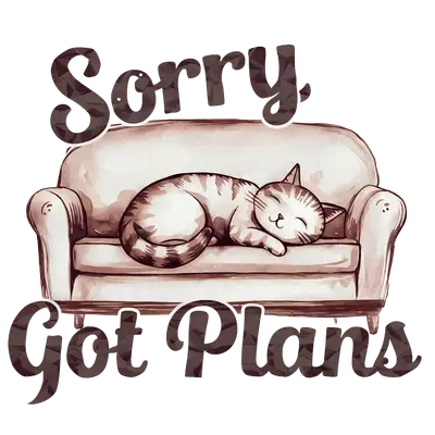 Sorry Got Plans Sleeping Cat DTF Transfer - Cozy Introvert Design