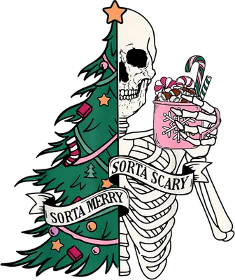 Sorta Merry Sorta Scary Christmas Skeleton DTF Transfer