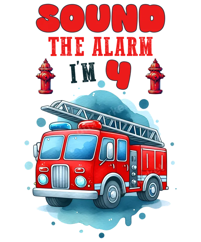 Sound the Alarm I'm 4 DTF Transfer - Fire Truck Birthday Heat Press Design