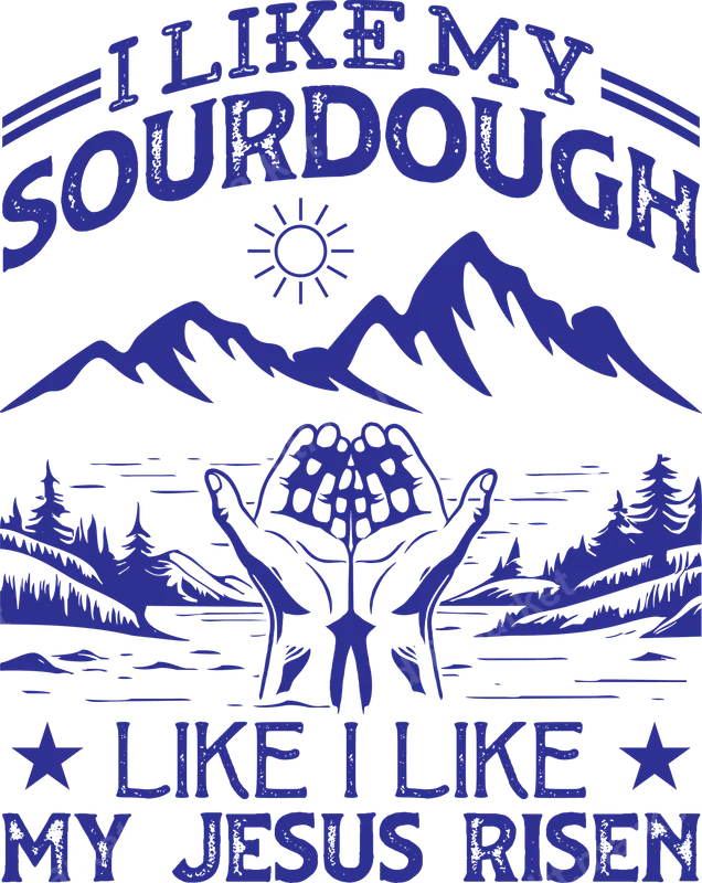 See allCelebrate your faith and passion for baking with our unique "I Like My Sourdough Like I Like My Jesus Risen" DTF transfer. This ready to press design features rustic typography, mountain landscapes, a rising sun, and cupped hands, evoking reverence and nature. The clever phrase connects risen sourdough with Jesus' resurrection, making it a truly special heat press design for your apparel. This humorous and heartfelt heat press transfer is perfect for Christian bakers, home cooks, church members, and anyone who appreciates a clever twist on faith-based messaging. It makes an ideal gift for Easter, Mother's Day, birthdays, or a thoughtful gesture for friends and family who share your beliefs and love for baking. Wear it proudly to potlucks, church gatherings, or while enjoying your coffee and fresh-baked bread. Our premium quality iron on transfer is designed for easy application on a wide range of fabrics, including cotton, polyester, and their blends. For best results, use a heat press at 300-325°F for 15 seconds with medium, even pressure. This durable t-shirt transfer can also be applied with a household iron, ensuring accessibility for all crafters. Say goodbye to tedious weeding – simply press and peel for a flawless finish! Experience vibrant colors and exceptional durability with our professional-grade direct to film transfer. Each design is printed using high-quality inks on specialized DTF film, ensuring a soft, crack-resistant finish that feels lightweight on any garment. The strong adhesive provides superior washability, so your message of faith and love for sourdough will last wash after wash.