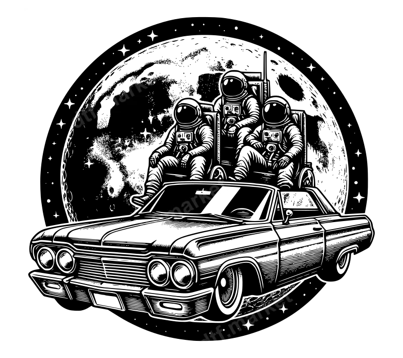 Space Astronauts Lowrider Car DTF Transfer | Moon Graphic