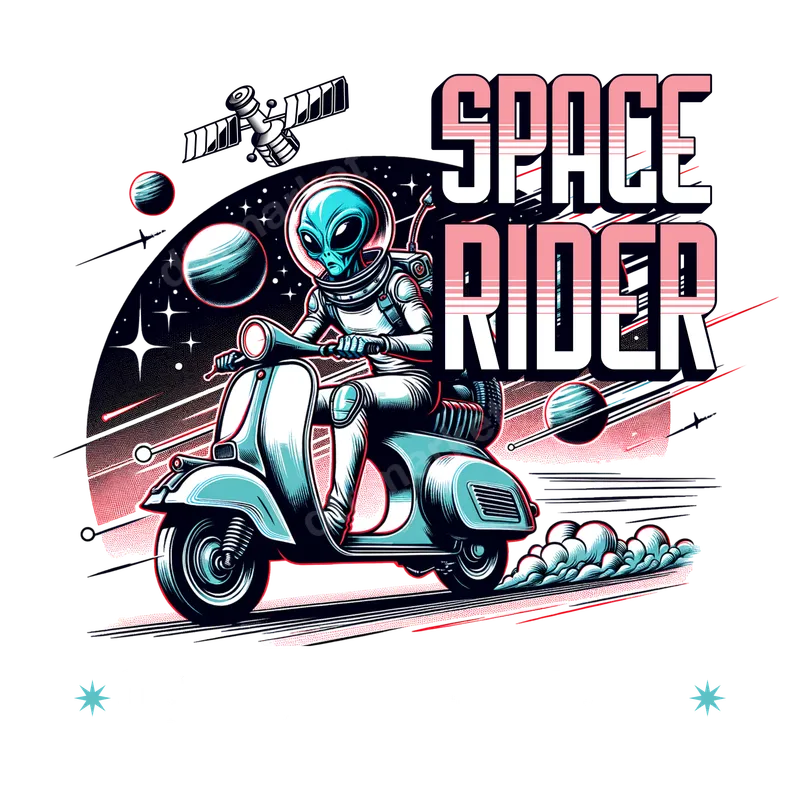 Space Rider Alien Astronaut Scooter Retro Sci-Fi DTF Transfer
