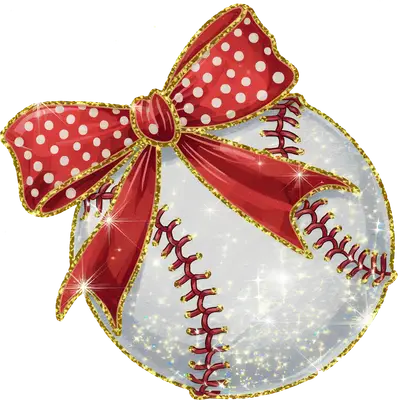 Sparkling Baseball with Red Polka Dot Bow DTF Transfer