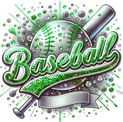 Sparkling Green Baseball DTF Transfer with Bat & Ball Design