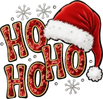 Sparkling Sequin HO HO HO Santa Hat DTF Transfer