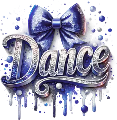 Sparkly "Dance" DTF Transfer with Sequin Bow & Blue Drips