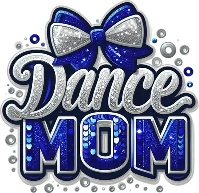 Sparkly Dance MOM Glitter Blue Silver Bow DTF Transfer