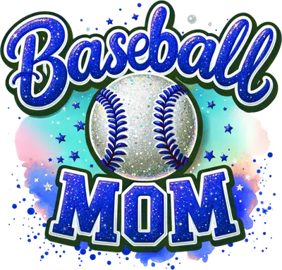 Sparkly Glitter Baseball Mom DTF Transfer Blue Ready to Press Design
