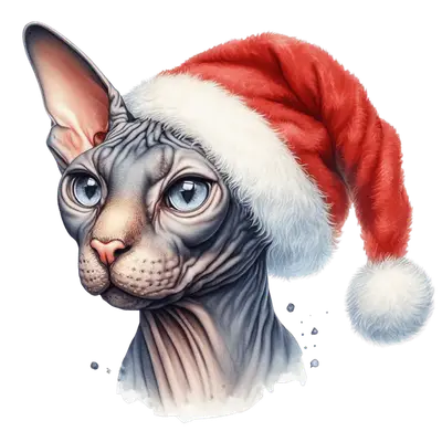 Sphynx Cat Santa Hat DTF Transfer | Unique Christmas Pet Design
