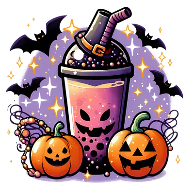 Spooky Cute Boba Witch DTF Transfer | Halloween Pumpkin & Bats