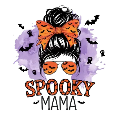 Spooky Mama Messy Bun DTF Transfer - Halloween Bat Design