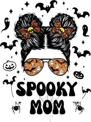 Spooky Mom Messy Bun Halloween DTF Transfer | Ready to Press Heat Transfer
