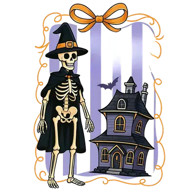 Spooky Skeleton Witch & Haunted House DTF Transfer