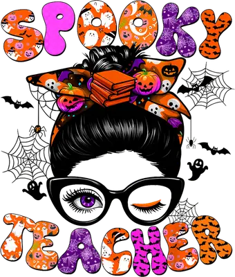 Spooky Teacher Messy Bun DTF Transfer - Halloween Edition
