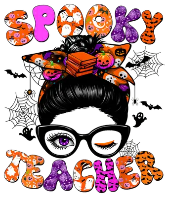 Spooky Teacher Messy Bun Halloween DTF Transfer