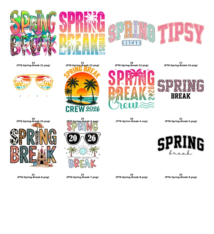 See allEmbrace the Spring Break vibe with our 'Spring Break Crew 2026' DTF transfer. This vibrant design features a picturesque sunset beach, complete with silhouetted palm trees and a figure by the ocean, evoking warm sands. The bold lettering declares 'SPRING BREAK CREW 2026', perfect for your upcoming vacation. This high-quality direct to film transfer arrives ready to press, ensuring a professional finish for your custom apparel. This eye-catching heat press design is ideal for groups on their annual Spring Break trip, college students, or anyone commemorating their 2026 beach getaway. Create matching t-shirts, tank tops, or beach bags for your crew, making it easy to spot each other and capture unforgettable group photos. It's also a fantastic gift for friends planning a tropical escape or celebrating the end of the academic year. Our apparel transfers are incredibly versatile, designed for easy application across various fabrics. Whether customizing cotton t-shirts, polyester athletic wear, or cotton-poly blends, this heat transfer adheres flawlessly. Simply use a heat press at 300-325°F for 15 seconds with medium pressure. No specialized equipment is needed beyond a standard heat press, and no weeding is required, saving you valuable time compared to vinyl transfers. Experience superior quality with every ready to press transfer. Our designs boast vibrant, crack-resistant colors and offer a super soft, flexible feel on garments, unlike stiff iron on decals. We utilize professional-grade DTF film with a strong, long-lasting adhesive, guaranteeing durability through countless washes. Transform your blank garments into personalized, stylish statements with confidence using our premium heat press ready designs.