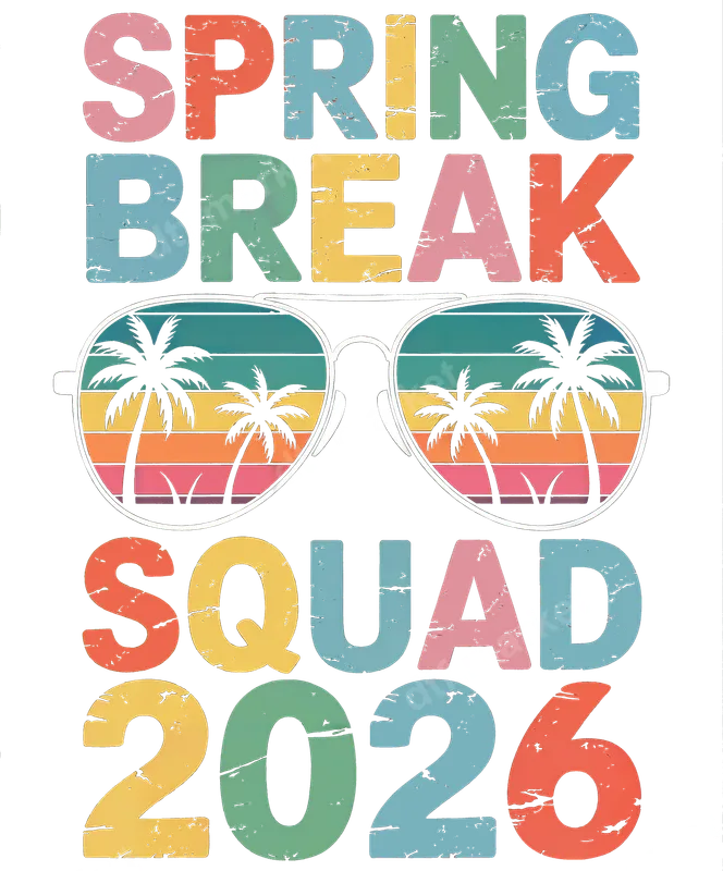 See allGet ready for an unforgettable getaway with our "Spring Break Squad 2026" DTF transfer. This vibrant, retro-inspired design features bold, distressed lettering in a palette of pastel hues: pink, green, yellow, and blue. Centered in the design are stylish aviator sunglasses with a stunning reflection of palm trees against a beautiful sunset beach scene, perfectly capturing that vacation vibe. This high-quality, ready to press heat transfer is ideal for customizing your group's apparel for an epic 2026 spring break adventure. This unique design is perfect for college students, high school seniors, or any group of friends planning their ultimate spring break trip. Imagine coordinating matching t-shirts or hoodies that stand out and celebrate your squad goals. It's an excellent choice for a beach vacation, a cruise, or any tropical getaway. Not only great for personal wear, but also makes a fantastic souvenir or gift for your travel companions to commemorate your 2026 spring break. Applying this incredible design is simple, whether you're a seasoned crafter or a first-timer. Our direct to film transfer works beautifully on a wide range of fabrics, including 100% cotton, polyester, and cotton/poly blends. For best results, use a heat press at 300-325°F for 15 seconds with medium pressure, then perform a cold peel. No need for tedious weeding, this iron on transfer is truly heat press ready and hassle-free. Crafted with professional-grade DTF film and strong adhesive, this apparel transfer ensures stunning results that last. Expect vibrant colors that pop, superior stretch and durability that resists cracking, and a wonderfully soft feel to the touch. Our transfers are made to endure countless washes, keeping your "Spring Break Squad 2026" gear looking fresh and fantastic for years to come.