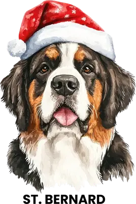 St. Bernard Dog Santa Hat DTF Transfer | Christmas Ready to Press Design