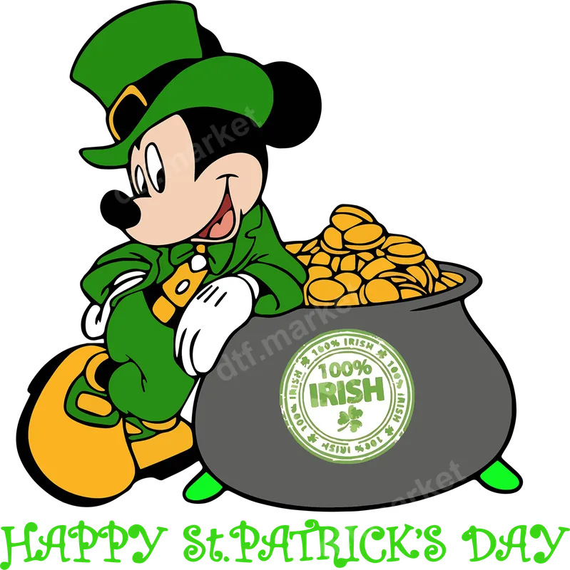 See allCelebrate St. Patrick's Day in style with this charming DTF transfer featuring a classic cartoon-style mouse dressed as a cheerful leprechaun. The design showcases the character leaning on a pot of gold overflowing with coins, complete with a shamrock emblem that proudly declares "100% IRISH." Below the playful imagery, the greeting "HAPPY ST. PATRICK'S DAY" is displayed in festive green lettering, making it a perfect ready to press transfer for your holiday apparel. This delightful iron on decal is ideal for anyone looking to embrace the spirit of St. Patrick's Day, from individuals to families, or as a thoughtful gift for friends and loved ones with Irish heritage. It's fantastic for parties, parades, school events, or simply adding a touch of festive cheer to your everyday wear. Transform plain shirts, bags, or accessories into personalized, celebratory pieces with this vibrant heat press design. Applying this apparel transfer is straightforward and efficient. It adheres beautifully to a wide range of materials, including cotton, polyester, and various fabric blends. For best results, use a heat press at 300-325°F for 15 seconds with medium pressure, then cold peel. A household iron can also be used, ensuring consistent heat and pressure. The best part? There’s no weeding required, saving you time and effort. Our direct to film transfers are crafted for exceptional quality and durability. You'll enjoy vibrant, crisp colors that resist cracking and fading, maintaining their appeal even after multiple washes. Each t-shirt transfer is printed on professional-grade DTF film with a strong, flexible adhesive, ensuring a soft feel and a long-lasting finish on your chosen garment.