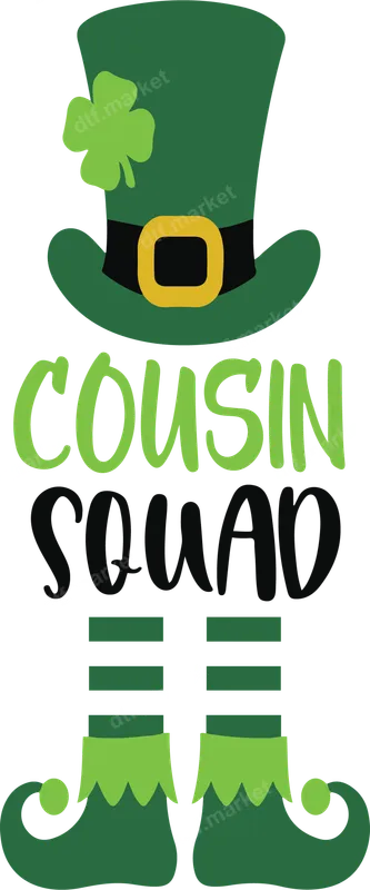 See allThis vibrant direct to film transfer features a festive St. Patrick's Day design. It showcases a green leprechaun hat with a shamrock, whimsical striped leprechaun legs, and the playful phrase "COUSIN SQUAD" in cheerful green and black lettering. This high-quality DTF transfer is ready to press, allowing you to easily add Irish spirit and family fun to any garment. The "Cousin Squad" design is ideal for groups of cousins celebrating St. Patrick's Day at parades, parties, or family gatherings. Perfect for creating matching shirts, it makes spotting your crew easy. This fun heat transfer also makes a fantastic gift, helping family members get into the holiday spirit with a personalized touch. Bring joy and camaraderie to your next family event. Applying this apparel transfer is straightforward. It works beautifully on cotton, polyester, and most blends. For best results, use a heat press at 300-325°F for 15 seconds with medium, even pressure. This iron on transfer does not require weeding, saving you time. Simply press, peel, and enjoy your new custom garment. Our DTF transfers use professional-grade film and inks for exceptional quality. Colors are incredibly vibrant and stand out boldly. Engineered for durability, this heat press design is crack-resistant and maintains a soft, flexible feel even after multiple washes. The strong adhesive ensures a long-lasting bond, providing a finish that rivals screen printing. Trust a premium t-shirt transfer for visual appeal and enduring wear.