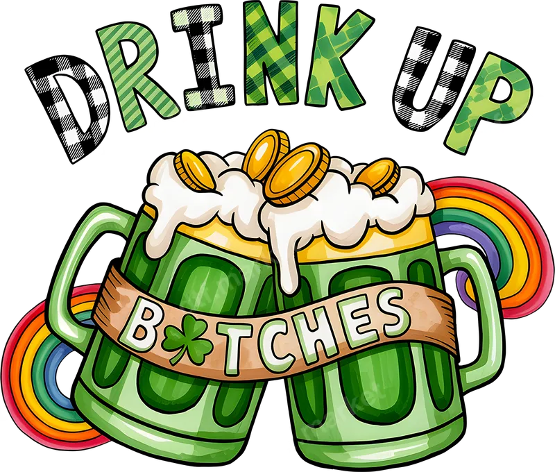 St. Patrick's Day Drink Up B*tches DTF Transfer Green Beer & Rainbow