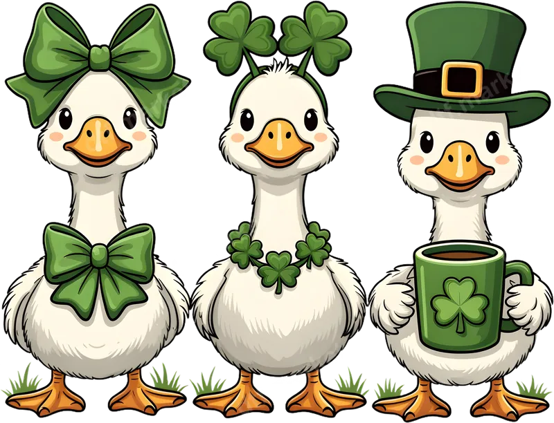 St. Patrick's Day Geese DTF Transfer - Shamrock & Leprechaun Fun