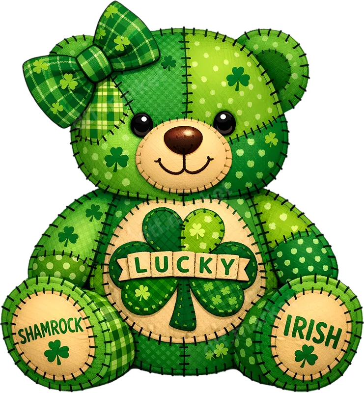 St. Patrick's Day Lucky Irish Patchwork Bear DTF Transfer