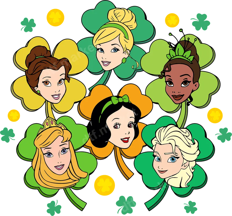 St. Patrick's Day Princesses DTF Transfer | Lucky Clover Girls Design