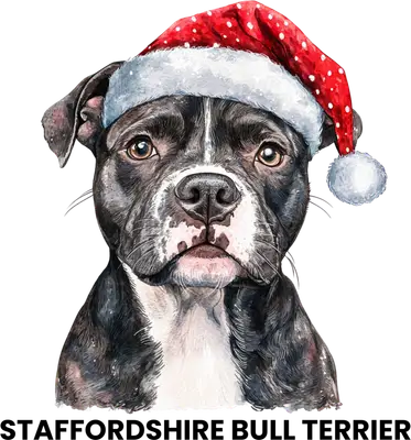 Staffordshire Bull Terrier Christmas Santa Hat DTF Transfer